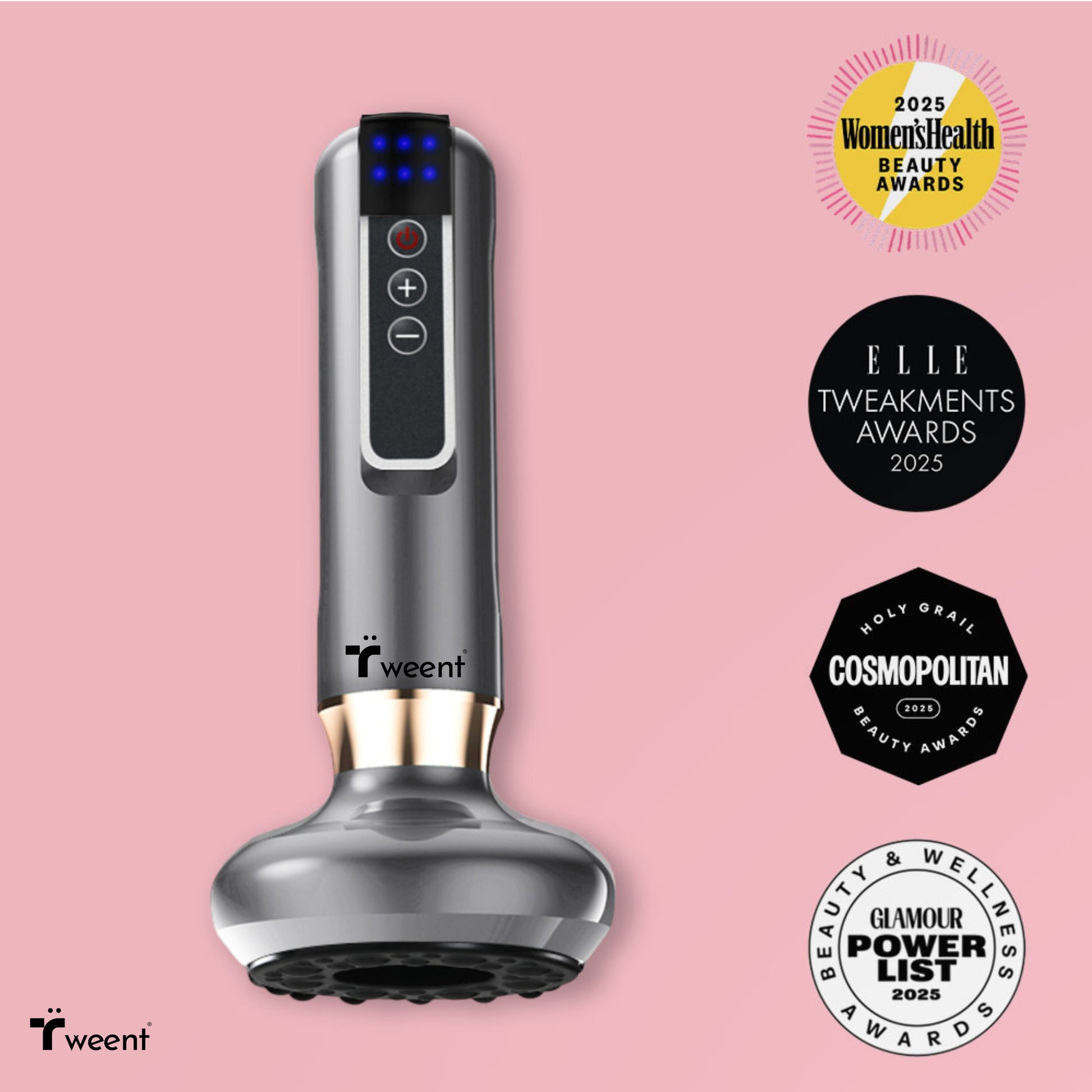 The Tweent™ Massager uses adjustable suction, rolling massage, and gentle heat to boost circulation, reduce cellulite, and firm your skin from the comfort of home.